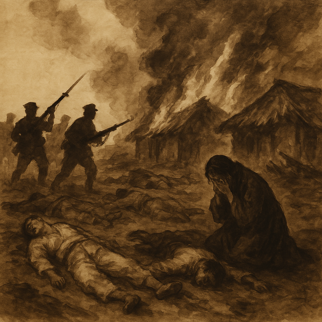 간도참변은 단순한 군사 보복이 아니라, 인종적·민족적 증오에 기반한 계획적 학살로 평가됩니다. 일본군은 병력을 이용해 문명사회의 탈을 쓴 집단적 범죄를 저질렀습니다.