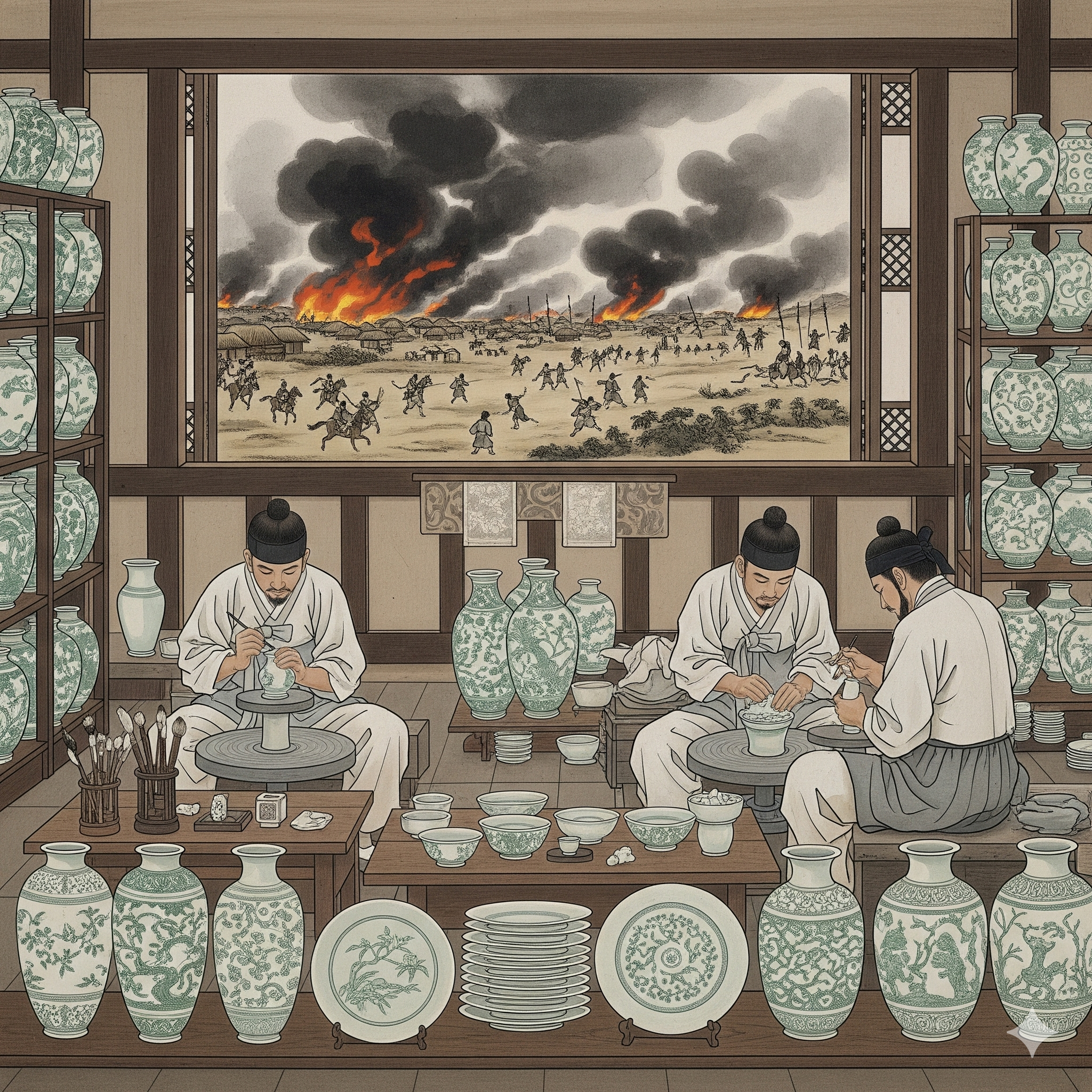 나라의 시련이 깊어질수록, 도공들의 혼은 더욱 깊은 곳에서 피어나 아름다움을 빚었다.