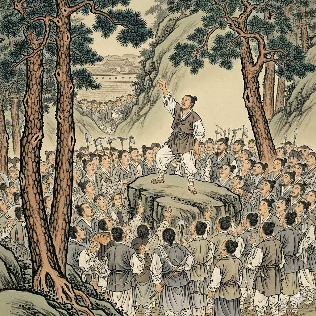 만적은 1198년, 개경(開京)에서 100여 명의 노비들을 모았습니다. 그는 노비들 앞에서 이렇게 외쳤습니다. "왕후장상에 어찌 씨가 따로 있겠느냐? 때가 되면 누구나 할 수 있다. 우리도 힘을 합쳐 무신들을 죽이고 신분을 해방하자!" 이 외침은 당시 노비들에게 큰 울림을 주었습니다. 만적의 이 말은 신분 제도의 근간을 뒤흔드는 혁명적인 선언이었습니다. 이는 억압받던 노비들에게 자신들도 얼마든지 높은 자리에 오를 수 있다는 희망을 심어주기에 충분했습니다. 만적은 이들과 함께 최충헌과 권력자들을 제거하고 신분 해방을 이루고자 계획했습니다. 그들은 봉기 일자를 정하고, 무기를 준비하며 거사를 준비했습니다.