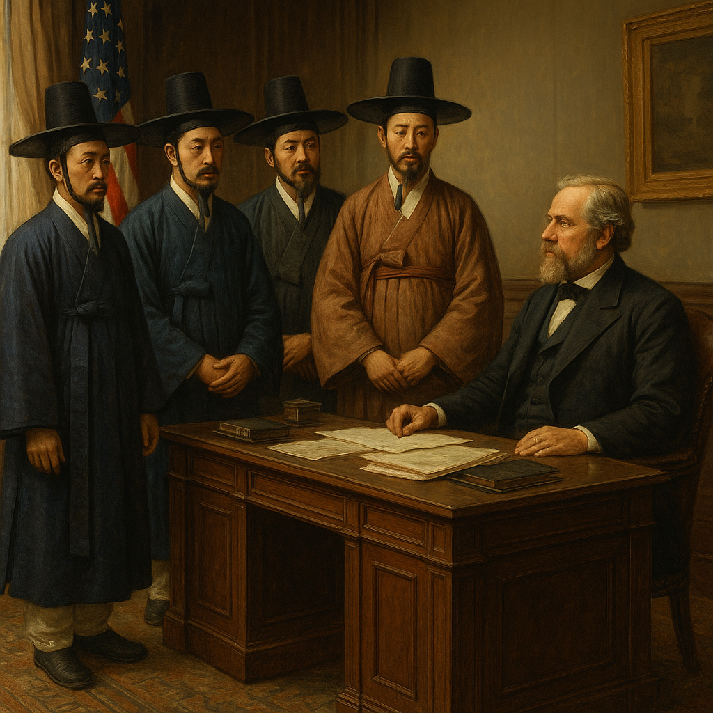 19세기 후반의 조선은 격랑 속에 있었습니다. 내부적으로는 정치적 혼란과 개혁의 요구가 맞부딪히고 있었고, 외부적으로는 서구 열강과 일본의 압박 속에서 근대화의 문턱에 서 있었습니다. 그 격동의 시기, 1883년 조선은 미국에 첫 공식 외교 사절단을 파견하는 역사적인 결정을 내립니다. 바로 보빙사(報聘使)의 파견입니다.