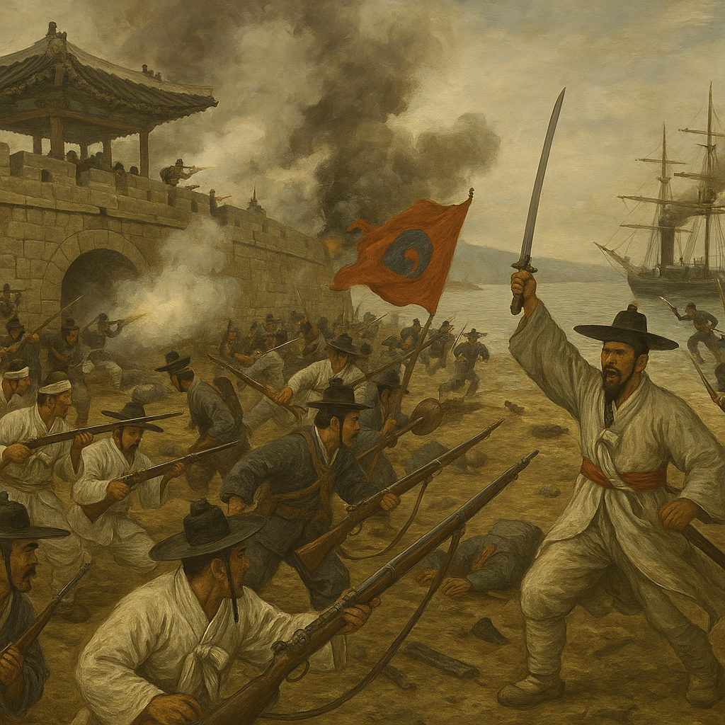 1871년, 고요했던 강화도 앞바다에 검은 연기를 내뿜는 낯선 함선들이 나타났습니다. 조선은 그때까지 경험하지 못했던 전혀 다른 세계의 강대국, 미국과 처음으로 정면 충돌하게 됩니다. 병인양요나 갑오개혁 같은 굵직한 사건들 사이에서 상대적으로 덜 조명받는 신미양요(辛未洋擾)는 그러나, 조선이 근대 세계 질서에 처음으로 직접 맞선 충격적인 순간이었습니다. 이 사건은 단순히 외세의 침략에 맞선 방어전을 넘어, 쇄국 정책을 고수하려 했던 조선의 굳건한 의지와, 변화의 물결을 막아보려 했던 마지막 몸부림을 상징합니다. 이제 그 역사적 현장으로 들어가, 두 세계가 충돌했던 그날의 이야기를 깊이 들여다보고자 합니다.
